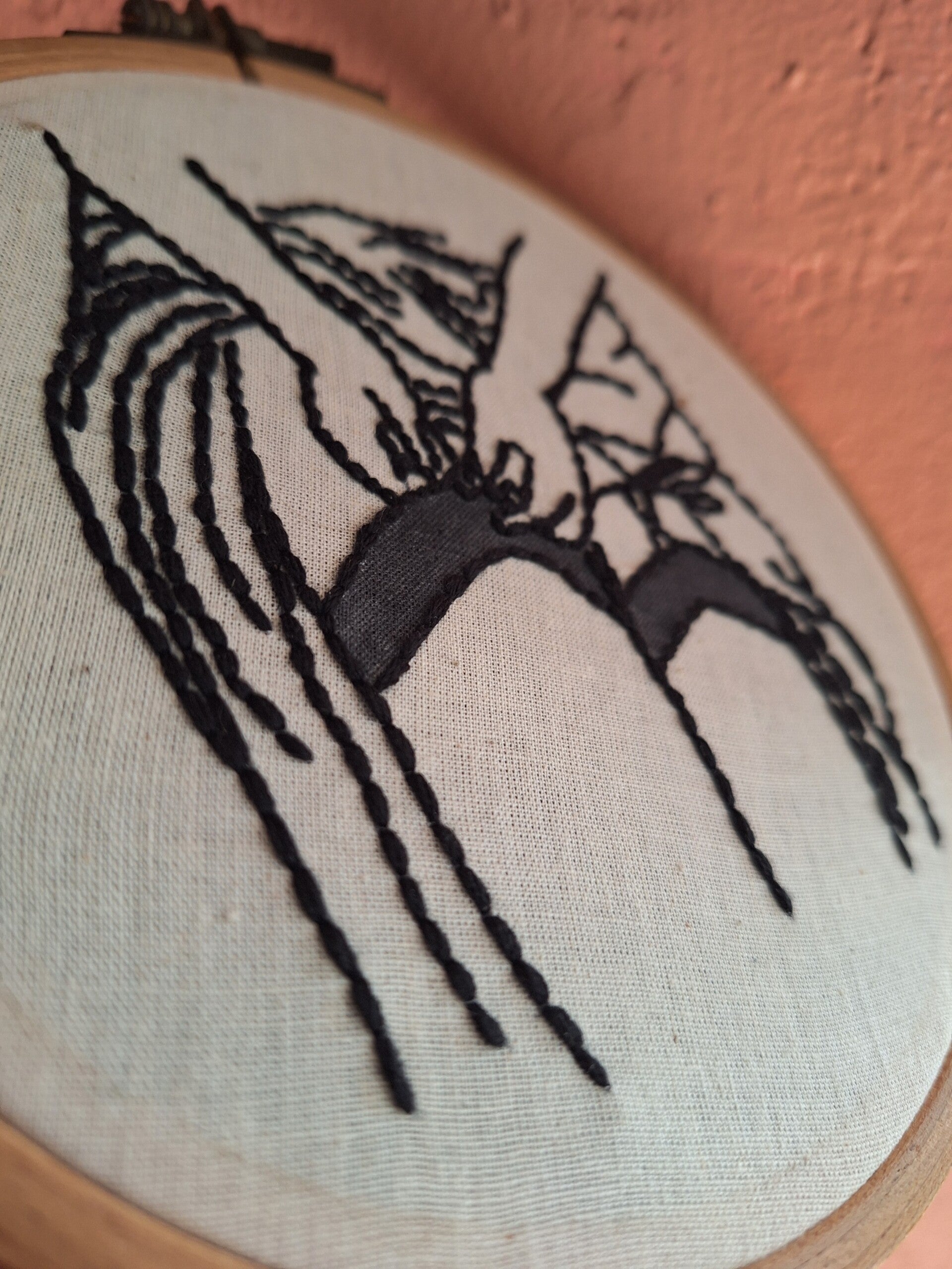 Handgeborduurd.