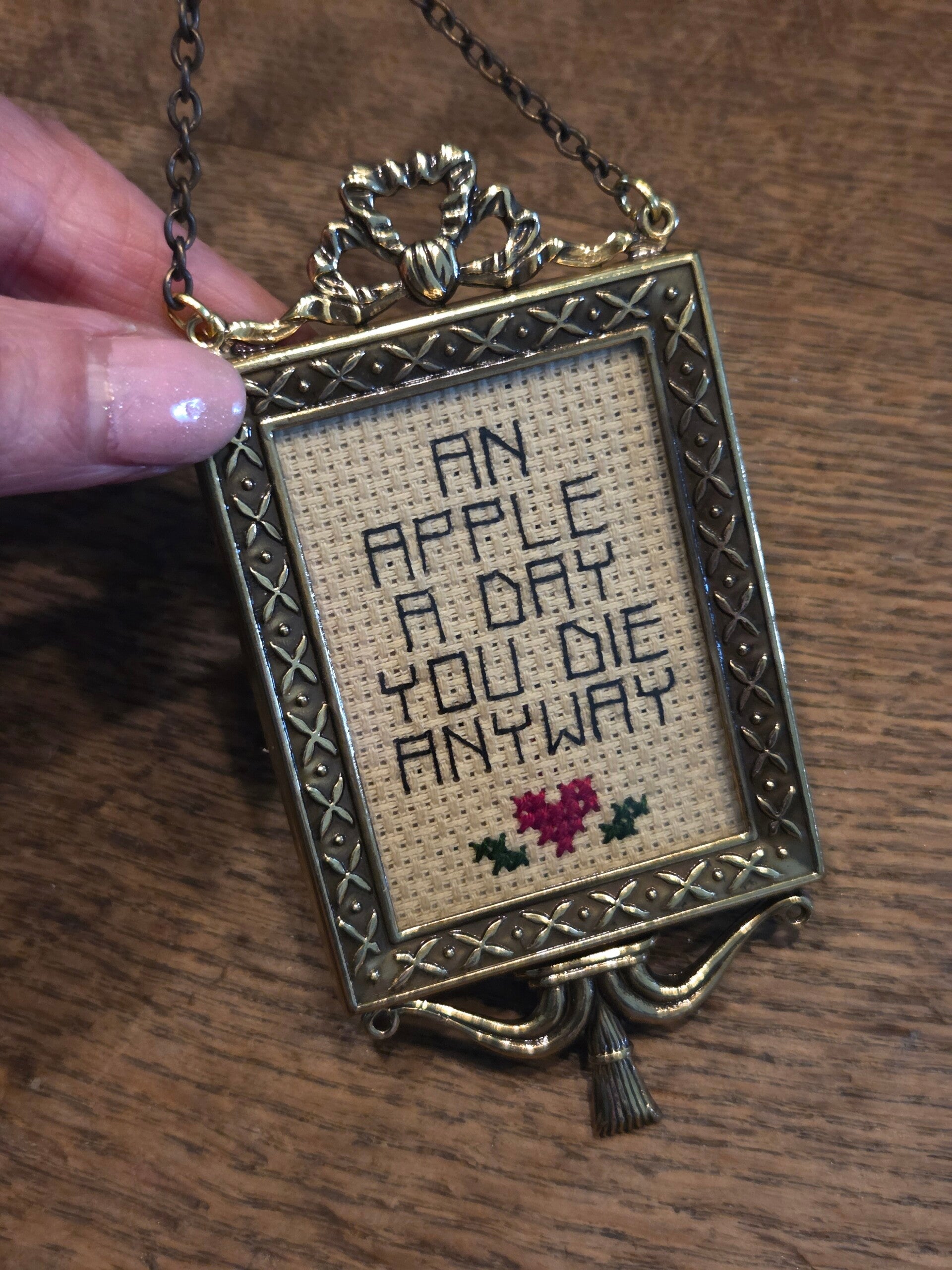 Met kettinkje om op te hangen.
